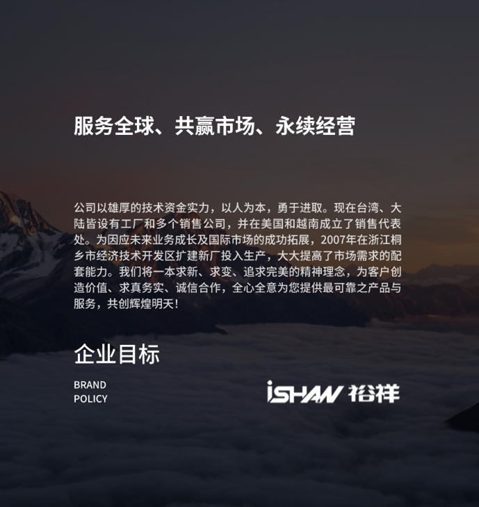 浙江勝祥機械有限公司為臺灣裕祥精機工業股份有限公司(ishan)在大陸之分公司,公司成立于2001年,是一家專業研發、生產各型先進集中潤滑給油裝置的高科技企業。公司產品種類齊全,擁有稀油、干油、油霧、油氣、油冷等各型潤滑裝置產品。廣泛適用于各型數控機械、加工中心、鍛壓、重型、印刷、塑料、鑄造、紡織、電梯、礦山、建筑、食品等行業的機械設備潤滑系統。我們可依據您的使用要求,為您提供最適用的潤滑系統設計、產品與服務。公司憑借幾十年的專業機械潤滑裝置制造經驗與先進可靠技術,積極自主研發、制造引領未來的先進產品,以更好的服務為不同客戶需求提供全方位的機械潤滑解決方案。